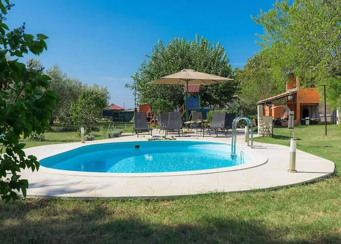 Die 2-Zimmer- Gurianum - With Pool verfügt über eine Terrasse mit Blick auf den Garten und ist 20 Autominuten vom Flughafen Pula entfernt gelegen. Diese Villa bietet einen Außenpool sowie Radfahren für aktive Gäste.